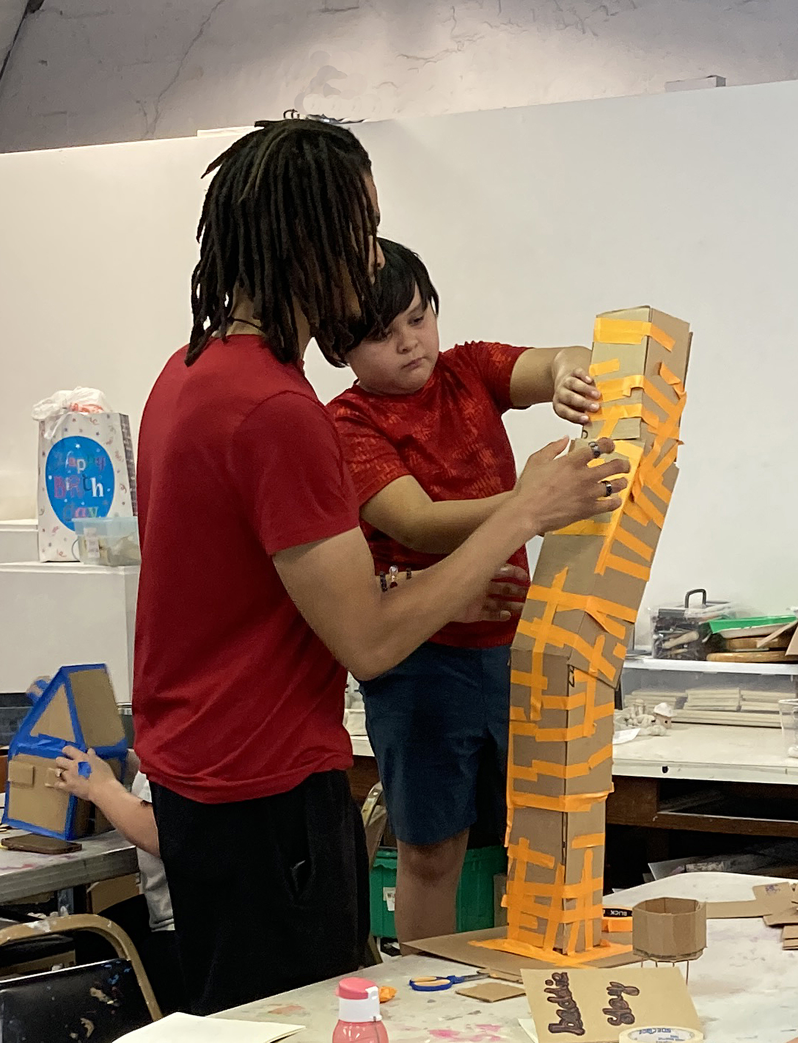 After the Urban Bright exhibition comes down, the studio returns to normal: pottery wheels, tables and chairs are once more set out, ready for the labor of making to begin again. Camp time arrives. Our teaching artists present a whole range of topics and projects that inspire and challenge participants. This summer the campers learned about balance, movement, insects, constructing traditional and modernist (or dystopian) buildings, and more. The summer months also bring interns, from different programs and schools, who want to learn about Art House and gain experience for stepping into a staff position. They tackle tasks, assist the artists and students, and complete their own creative projects that truly benefit the organization.
