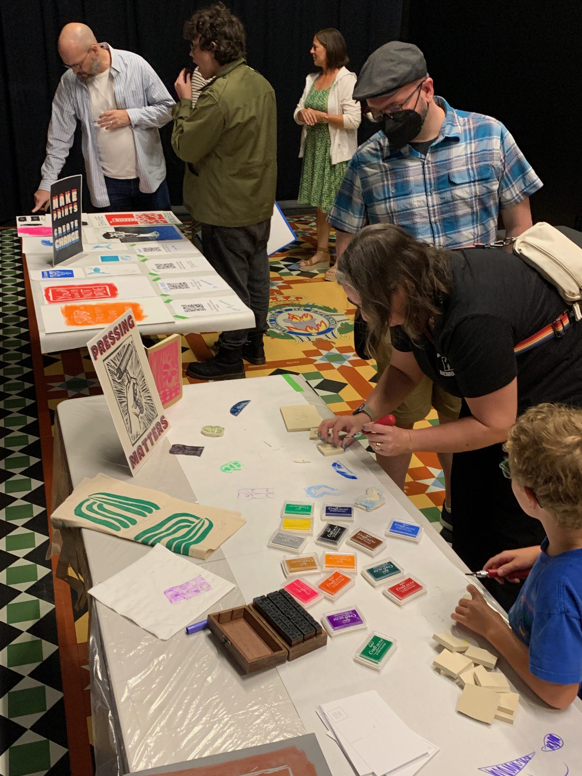 After its successful pilot, Pressing Matters partnered with Antwoine Washington and Michael Russell, directors of the Museum of Creative Human Art, to “further inspire creativity in underserved communities.” As Russell told me, “Pressing Matters offers our young people the opportunity to know that they’re human beings, and that they’re being heard.” Now funded by an Ohio Humanities Ignite grant, Pressing Matters provides student participants with a stipend. When the teen participants received their first checks, they turned to Washington and Russell for advice about how to save their money and how to open bank accounts. “It was clear,” said Washington, “that for the kids, Pressing Matters wasn’t just about making art or learning about printmaking. One student confided that he had never really learned to read and asked me where he could find a tutor. I wasn’t expecting that.” Guest visits from Amber Ford, artist and photographer; Sequoia Bostick, illustrator and freelance designer; Gillian Johns, professor of English and Africana Studies at Oberlin College; and Walter Patton, founder of Ghetto Therapy, an organization that connects residents of the central Cleveland area with licensed therapists, ensured that teens in Pressing Matters regularly heard from members of the community about the role of art in their own lives and careers, exemplifying some of the possibilities that arise at the intersection of arts and humanities.